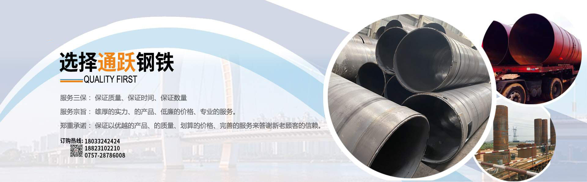 佛山市通躍鋼鐵有限公司 電話188-2310-2210 0757-28786008 擁有多條美國(guó)先進(jìn)的螺旋鋼管生產(chǎn)線,生產(chǎn)直徑φ159-φ3620mm(壁厚6mm-20mm)的雙面埋弧螺旋焊鋼管,年生產(chǎn)能力15萬噸。 生產(chǎn)螺旋管 螺旋鋼管 螺旋焊管 規(guī)格厚度6mm-20mm 直徑159mm-3620mm 有多條鋼板卷管機(jī)生產(chǎn)規(guī)格厚度6mm-70mm 直徑400mm-5020mm 螺旋管 螺旋鋼管 鋼護(hù)筒 焊接鋼護(hù)筒 鋼板卷管 丁字焊管 加工格構(gòu)柱 鋼管樁 材質(zhì)Q235B Q345B Q235A 45# 20# Q420D Q390D 錳板 歡迎來電報(bào)價(jià),公司配有大型型材 鋼板倉(cāng)庫,大量各種規(guī)格現(xiàn)貨H型鋼 槽鋼 角鋼 工字鋼 鋼板,鍍鋅方管 鍍鋅產(chǎn)品 產(chǎn)品可以定尺定長(zhǎng),提供打砂,除銹,上油漆,公司配有防腐加工廠,專業(yè)對(duì)鋼管進(jìn)行內(nèi)外壁防腐加工,鋼管外壁主要有三油兩布,五油三布,環(huán)氧煤瀝青及環(huán)氧樹脂漆,各種高分子涂料。 ......